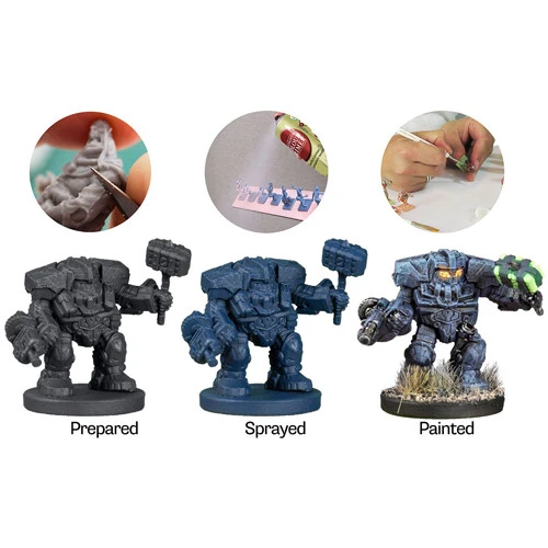 An ingenious combination of Primer and Color Spray in one. The Color Primers unique formula has been designed to be used on all metal, plastic and resin miniatures and leaves a perfect finish. The extra-fine pigment and special nozzle combination makes the Color Primers easily cover the first time.