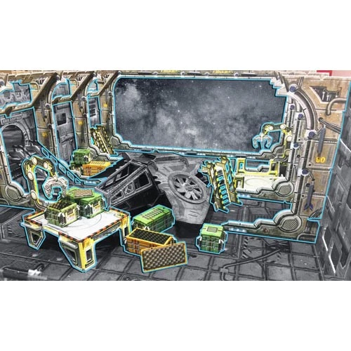 This pack contains everything you need to upgrade your sci-fi gaming table with a spaceship arrival hangar or loading bay. It can be assembled at a height and width of your choice and includes loading machinery and cargo crates.