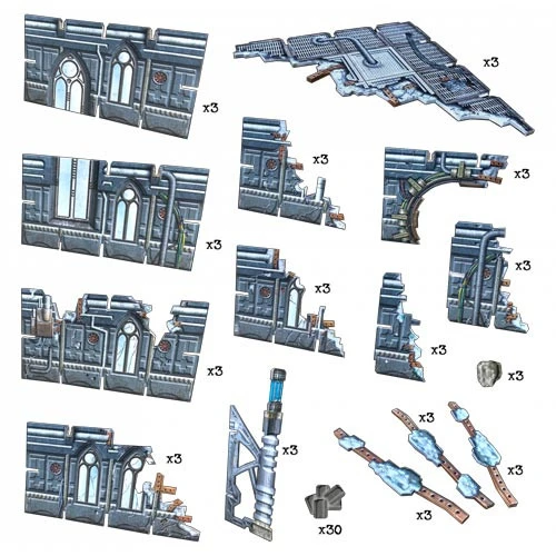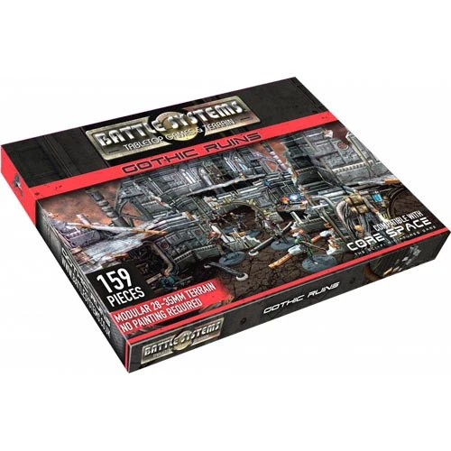 This box contains everything you need to build a multi-level ruined gothic city block, suitable for all 28-35mm sci-fi games in a dark future. All the pieces are modular and can be assembled in any combination you choose for a different set-up every time. The set can be expanded with other sets from the Battle Systems terrain range.