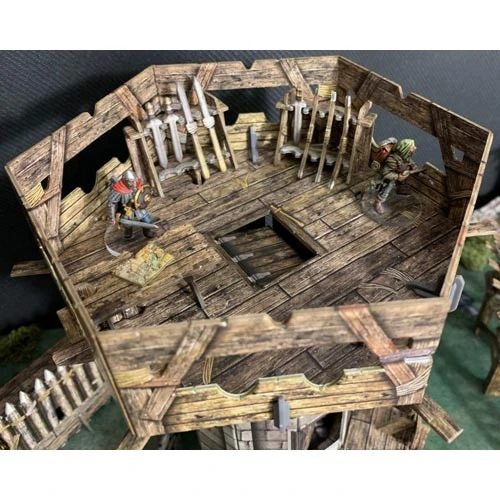 This box contains everything you need to build a towering lookout post, suitable for many 28-35mm fantasy and historical games. The watchtower measures over 10? / 26cm tall. The interior is fully detailed and the roof and upper floors are removable. The set comes complete with furniture and scatter terrain to accessorize your gaming table.