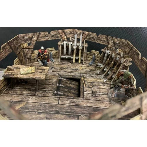 The terrain is supplied flat-packed on high-quality, high-density card, printed in full colour on both sides, so no painting required! The terrain requires assembly, and some smaller parts will require glue.