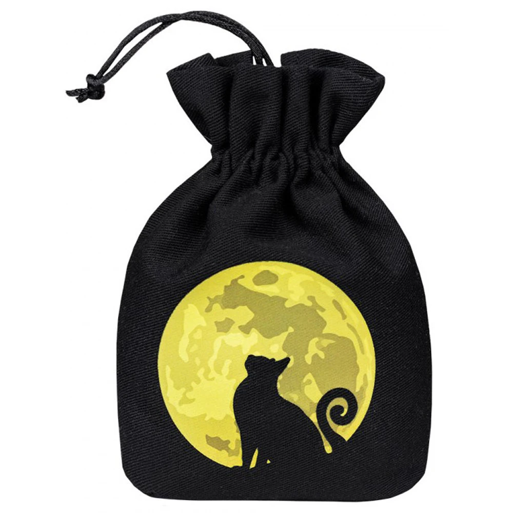 At night, all cats are grey – except for this one! This dice pouch, made of sturdy black cotton, features a colorful print of a cat sitting in front of the full moon. The best part? The moon print glows in the dark! The pouch is closed with durable satin strings and can hold 9 full sets of dice.