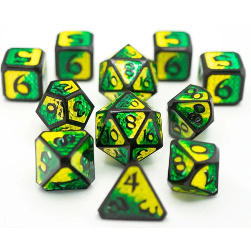 • 11 Piece Set – Standard 7 piece RPG dice set with an additional d20 and 3 d6s