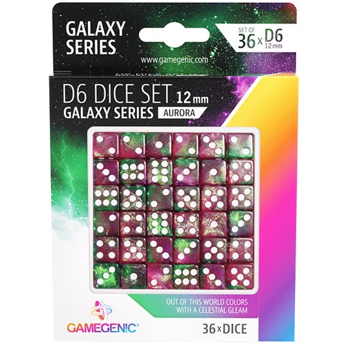 You can never have too many dice! The Galaxy range is the exciting fusion of two or more cosmic colors, creating unique looks with the addition of glittering elements.