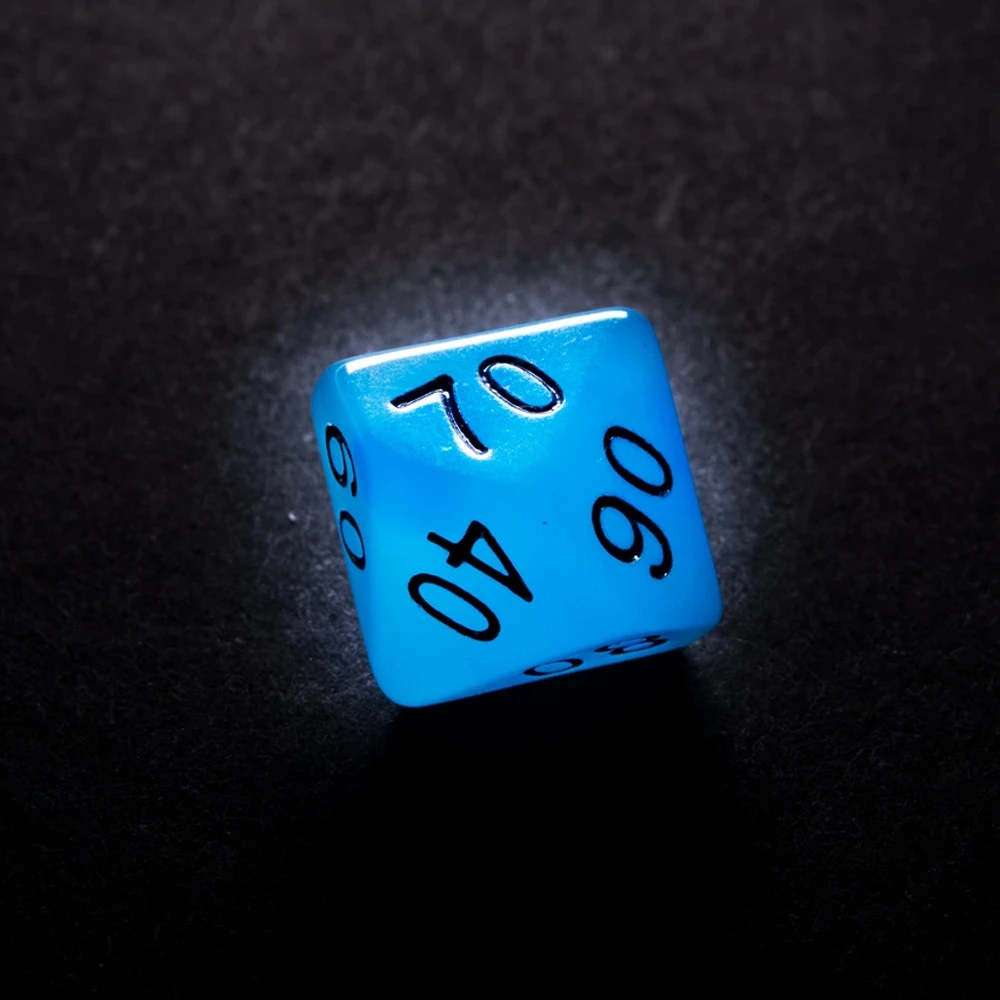 Choose your weapon! This dice set contains a D4, a D6, a D8, two D10 (10 and 00), a D12 and a D20. All dice are round-cornered and manufactured at a premium level. The dice from the Glow dice set glow in the dark and won’t let the light go out on your adventure.