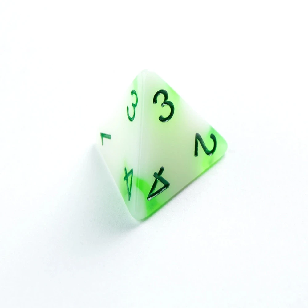 Choose your weapon! This dice set contains a D4, a D6, a D8, two D10 (10 and 00), a D12 and a D20. All dice are round-cornered and manufactured at a premium level. The dice from the Glow dice set glow in the dark and won’t let the light go out on your adventure.