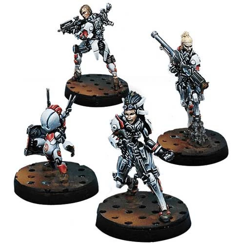This new Infinity unit box provides all the weapon options needed. Now you can compose a Fireteam of these Heavy Infantry from the Bakunin Sectorial Army. The Riot Grrls are the true daughters of punk and the street icons of urban warfare.