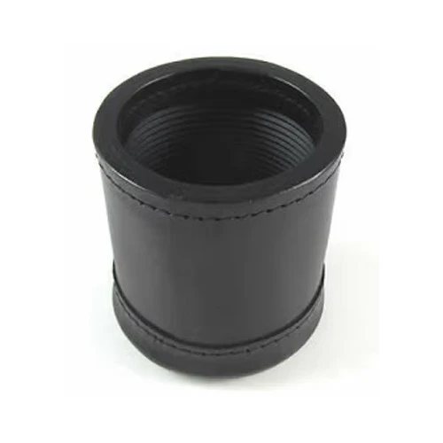 This round black leather dice cup has a ribbed cloth lined interior and padded base.