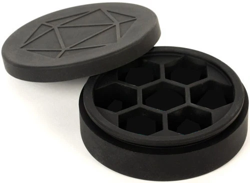 This silicone dice case is perfect for storing your dice sets! The innovative, patent-pending case is made from solid silicone and is sturdy enough to secure your dice, while soft enough to protect them. Each case hold seven dice.