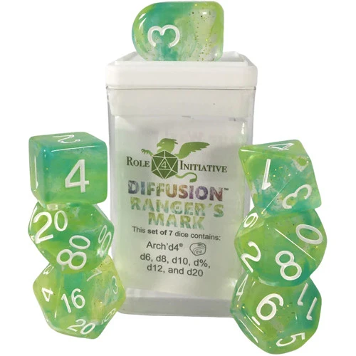 This set of dice is part of R4I’s Classes & Creatures Collection which has a thematic color design representing an iconic RPG character class and includes Arch’d4, d6, d8, d10, d%, d12, and Balance’d20.