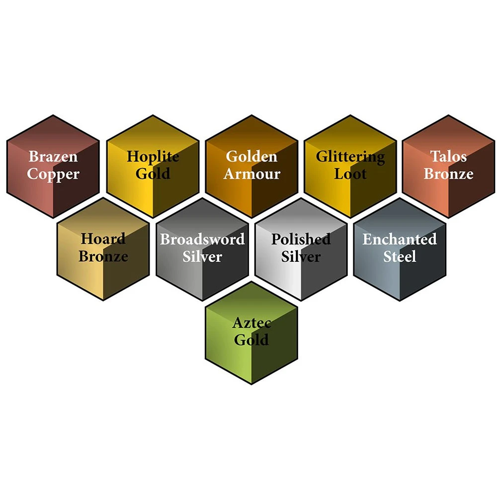 Our revolutionary new Speedpaints Metallics are the easiest way to get metallic effects on your miniatures in one simple application. Speedpaint Metallics are the hobby’s first-ever metallic one-coat painting solution, and this paint set is the fastest way to get your hands on all ten! With colours ranging from rich Talos Bronze, to shimmering Broadsword Silver, and glimmering Hoplite Gold – you have the perfect metallic selection for your hordes of plate mail, carapace, and armour.