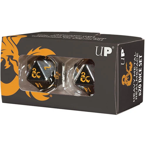 Roll with advantage and ward off enemies on your next adventure with the official Dungeons & Dragons Heavy Metal d20 Dice Set! Made from a heavy, zinc alloy material, rolling these dice will send a rumble through the realm! The set includes two 20-sided dice featuring the iconic Dungeons & Dragons logo in place of the number 20.